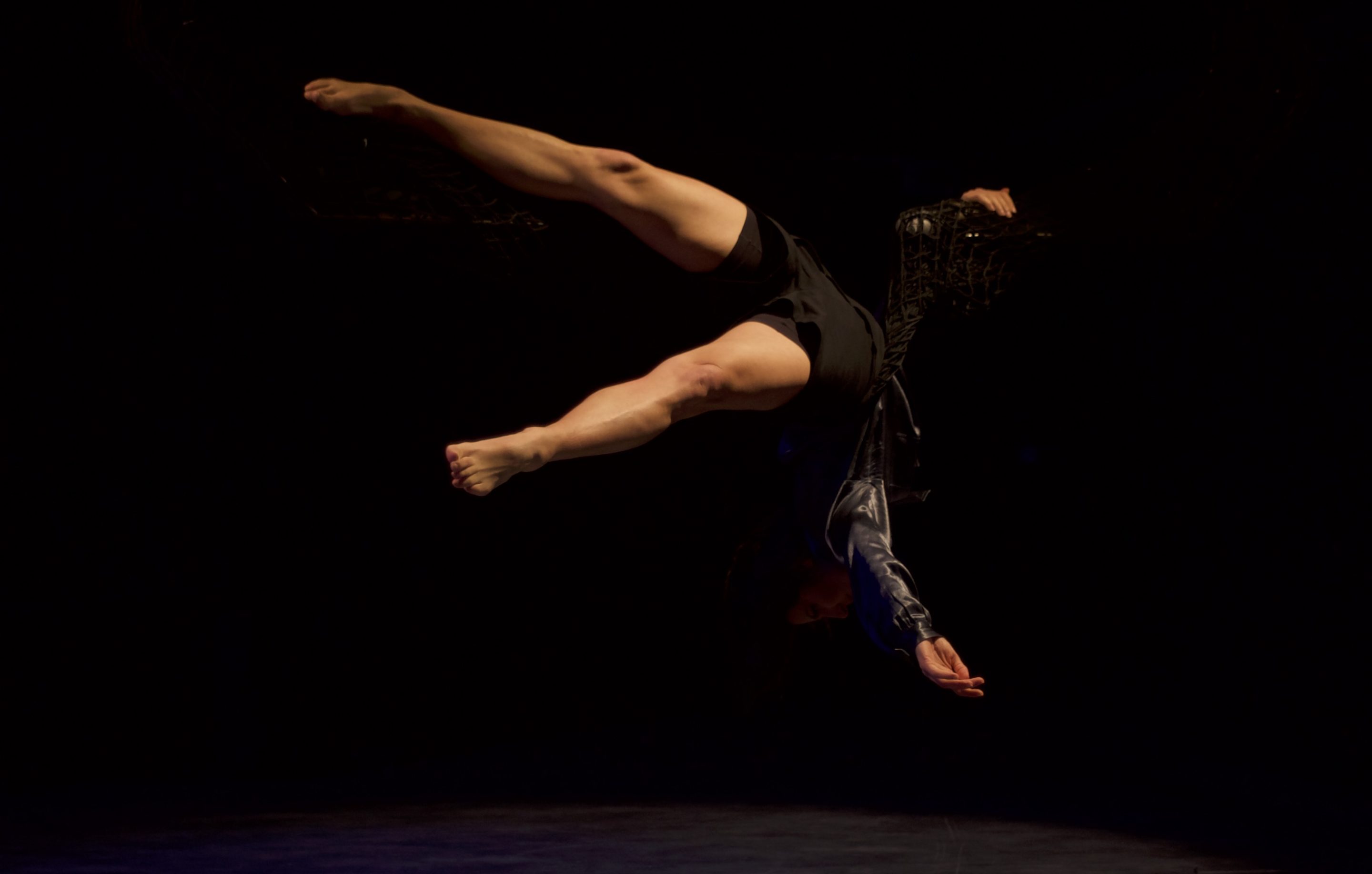 Évoluant au sein d’une sculpture métallique interactive, une danseuse met en mouvement son support singulier tout en générant des sons. Retransmis par des capteurs, les signaux acoustiques sont ainsi mixés en direct. Une fuite, une fugue hors du temps, entre terre et ciel, dans un ailleurs intime, est ainsi livrée aux spectateurs.