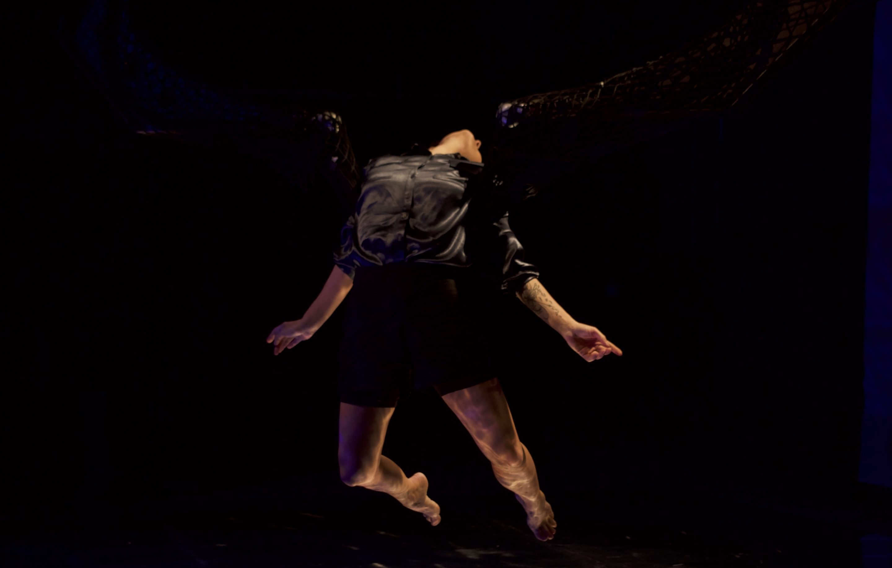 Évoluant au sein d’une sculpture métallique interactive, une danseuse met en mouvement son support singulier tout en générant des sons. Retransmis par des capteurs, les signaux acoustiques sont ainsi mixés en direct. Une fuite, une fugue hors du temps, entre terre et ciel, dans un ailleurs intime, est ainsi livrée aux spectateurs.